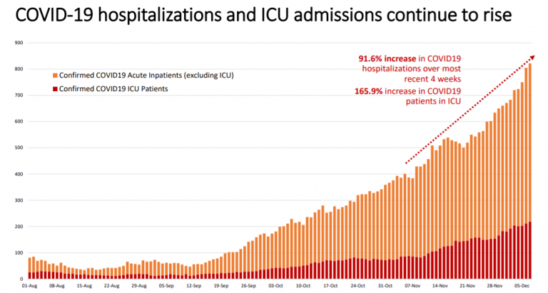 Además, Brown dice que la ocupación de la UCI seguirá estando por encima de las 200 camas durante el próximo mes y puede aumentar si se relajan las intervenciones de salud pública.